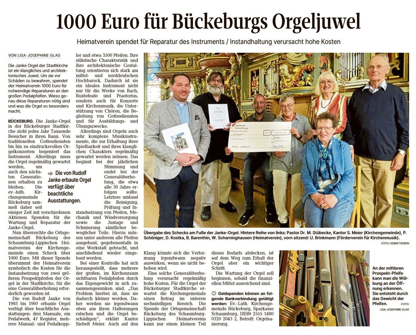 "1000 Euro für Bückeburgs Orgeljuwel" - 17. September 2025